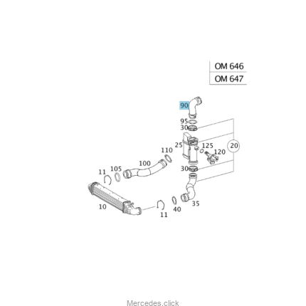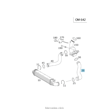 Przewód chłodnicy powietrza Mercedes W203 z silnikami diesla OM611/646 4-cylindry 2,2 CDI i OM612 5-cylindrów 2,7 CDI  odpowiada numerom Mercedesa