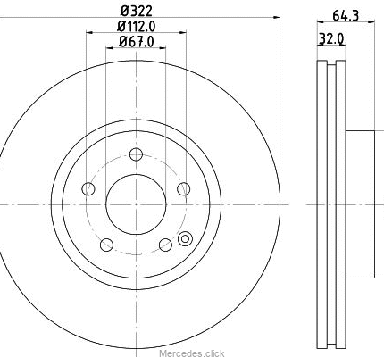 Tarcza hamulcowa oś przednia Mercedes C klasa W204, E klasa W212, E coupe A207 SLK R172